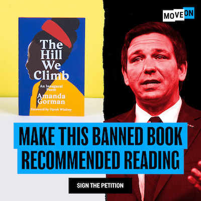 With MAGA republicans caving to extremist groups like Moms for Liberty and their draconian crusade against the freedom to read, Gorman—the inspiring author and activist—continues to use her platform to champion diversity and fight back against book bans. Gorman is one of nearly 175 artists and entertainers who recently signed MoveOn's Artists Against Book Bans open letter.2 This fight is personal to Gorman, whose history-making poem, "The Hill We Climb," was shamefully restricted from a Florida school earlier this year after just one individual parent's complaint.2
