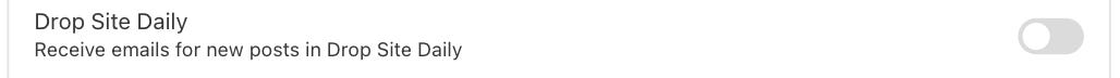 If you want to continue getting this newsletter, you don’t have to do anything. But if this is too much—we do try to be mindful of your inbox—you can unsubscribe from this newsletter while continuing to get the rest of our reporting. Just go into your account here at this link, scroll down, and toggle the button next to “Drop Site Daily” to the off setting. It looks like this: