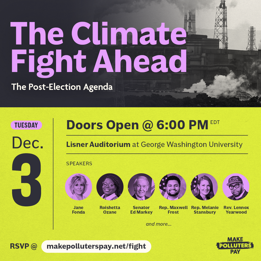Join us TOMORROW for The Climate Fight Ahead! I am so excited to be joining a powerful line-up of speakers ready to scheme how we can continue to push for climate, clean energy, and environmental justice during a Trump Administration.