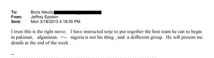 Epstein Received Sensitive Military Intelligence Amid Gates Foundation Polio Campaign in PakistanJustice Department emails show that Epstein helped the Gates Foundation gain access to the Taliban—and received confidential reports and intelligence on Pakistani military operations.On February 27, Pakistani Defense Minister Khawaja Asif declared “open war” on Afghanistan after a week of clashes with the Taliban along the border and strikes on military positions in Afghan territory. For decades, Pakistan’s border regions with Afghanistan have served as a testing ground not only for new military tactics but also for ambitious international organizations and philanthropists who have tried to reshape the region’s public health sector and state institutions. Documents released by the U.S. Department of Justice reveal surprising details about one particular episode: Jeffrey Epstein’s involvement with the Bill and Melinda Gates Foundation’s efforts to eradicate polio in Pakistan. Epstein long maintained a close personal relationship with Gates as well as with officials from his charitable foundation, which he used to steer resources toward politically sensitive research projects and technology firms. The email correspondence in the disclosures about Pakistan came a few years before the collapse of the U.S.-backed government in neighboring Afghanistan. They also suggest that Epstein’s interest in the region was not strictly limited to public health matters. In a series of emails on the polio vaccination campaign from the International Peace Institute (IPI)—a nongovernmental organization that Epstein funded and often used as a vehicle for backchannel diplomatic efforts—Epstein also received confidential reports and on-the-ground military intelligence, including sensitive information about NATO operations at Zhob Airport, a small domestic airport in Balochistan, only an hour’s flight away from the Afghan capital in Kabul. Epstein leveraged his relationship with Gates and contacts in the region to become a central figure in Pakistan’s anti-polio efforts from 2013 to 2018. By personally orchestrating the partnership between the Gates Foundation and IPI, Epstein positioned himself as the gatekeeper for the Gates-Pakistan relationship for five years. During this time he also explored developing backchannel contacts with the Taliban over polio eradication. The fallout for Gates from his connection to Epstein continues. This week, he was scheduled to be one of the headline draws at India’s high-profile AI summit—a gathering to showcase the country’s ambitions to become a global artificial intelligence powerhouse—before the Microsoft founder abruptly announced he was dropping out of the event. At a town hall meeting Tuesday with foundation staff, Gates acknowledged having two consensual affairs that were known to Epstein, but denied any involvement in illicit activity or contact with victims of sex trafficking, the Wall Street Journal reported. Gates said he deeply regretted his relationship with Epstein, claiming that he had been aware of an “18-month thing” that had previously restricted Epstein’s ability to travel—a reference to his conviction for soliciting a minor for prostitution—but had failed to properly scrutinize Epstein’s background before associating with him. This is the latest in Drop Site’s series on Epstein. We are partnering with Jmail, a searchable inbox of Epstein’s emails, to make all the Epstein messages public. Without your support, we can’t operate. Please consider becoming a paid subscriber or making a 501(c)(3) tax-deductible donation today. “Everyone Except the Govt Wins.”In March 2013, Epstein sent an email to Boris Nikolic, Bill Gates’s chief scientific advisor and trusted confidante, with the subject, “example of first polio idea, there are many.” In the email, Epstein goes on to explain a non-profit structure that would allow donors to pledge donations and receive tax benefits for their pledges in the future. “Everyone except the govt wins,” Epstein wrote. “In essence funding todays polio with future estate tax paid to the foundation instead of govt.” At the time, Epstein had been complaining to Nikolic that Bill Gates did not appreciate the full potential of the Gates Foundation. “I have five or six schemes that would work for polio. bill is welcome to meet for breakfast tomorrow, or both of you come to the island sometime in the next two weeks and i will spend a couple of hours sharing methods,” he wrote in an early March email pitching ideas to Nikolic. Nikolic’s close association with Epstein had begun around 2009, and for the next few years he remained the point person in Epstein’s association with Gates. Within a few days, Epstein had met with Gates and wrote positively about the meeting in a message to Nikolic on March 5, 2013, “We could definitely structure things so that instead of the us gvt getting 100 billion dollars in esate taxes it would go to the foundaiton,” Epstein wrote. “This is easy, most people would prefer it, if they knew how to accomplish it.” He offered the services of Terje Rød-Larsen, president of the International Peace Institute: “Terje will help with pakistan, and nigeria, you guys should be specific about what you want. very specific.” The Gates Foundation, Boris Nikolic, Terje Rød-Larsen, and the International Peace Institute did not respond to requests for comment. Along with Afghanistan and Nigeria, Pakistan was one of the last countries where polio remained endemic. But the politics of the U.S. war in Afghanistan made international NGO work in Taliban-controlled areas of Pakistan difficult—a fact Epstein was acutely aware of. The next day, he emailed Nikolic again, “Re Afghanistan, does foreign corrupt practice act apply to foundation work?” Epstein wanted to know if the law, which prohibits U.S. companies from bribing foreign officials, would appl