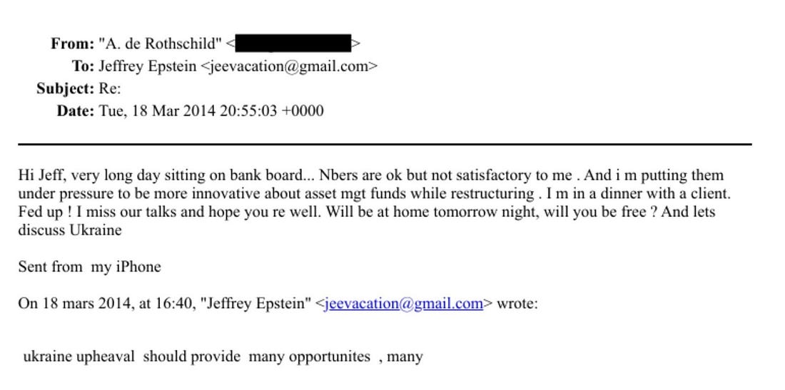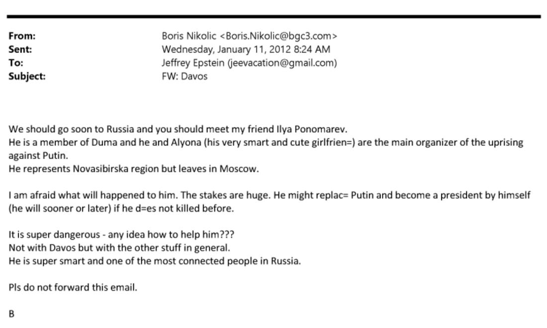 On March 20, 2014, Ilya Ponomarev was the sole “no” vote in the Duma on Russia’s annexation of Crimea. He was vilified in Russian state media, and placed on a billboard in the center of Moscow which labelled him as a “national traitor.” Ponomarev fled to the United States soon after. The next year, in June 2015, Epstein asked for Nikolic’s help obtaining asylum for a Russian woman whose name is redacted in the emails. Nikolic offered to introduce her to Ponomarev. “He knows most of leadership of LGBT community in Russia and has helped such application for asylum in USA in past,” Nikolic wrote, adding, “He will help.” By this time, Nikolic had departed the Gates Foundation, and was helping steer major private capital into the gene-editing boom. In August 2015, Epstein’s Deutsche Bank banker, Paul Morris, forwarded a write-up on the CRISPR startup Editas Medicine, highlighting a $120 million funding round led by Nikolic. In the final year before his death, Epstein supported a bio-lab in Ukraine for the production of “designer babies,” led by hacker Bryan Bishop. On July 21, 2018, Epstein wrote to Bishop, “i have no issue with investing the problem is only if i am seen to lead.” Bishop wrote back, “I have always envisioned there would be anonymity requirements about babies– we can’t publicly identify who these are or their parents or benefactors, it would brand the child as (essentially, and sadly) a freak for life in the media.” Bishop planned to brainstorm with Epstein about ways to protect the anonymity of all persons involved. “I had always assumed the investor would need absolute anonymity, for these kinds of products,” Bishop wrote. “So the financial structure needs to be designed with these details in mind.” After Russia’s invasion of Ukraine in 2022, Russian state media began spreading a “conspiracy theory” that the United States was operating secret military biological experiments to create “monster” soldiers in Ukraine. U.S. and Ukrainian officials categorically denied the allegations. As the war unfolded, Ilya Ponomarev became a leader of the Freedom of Russia Legion, a volunteer militia of Russian defectors fighting for Ukraine, and joined the Congress of People’s Deputies, a shadow parliament of Russian opposition figures. In 2019, a redacted sender wrote to Epstein regarding another vocal critic of Putin, Ukrainian President Volodmyr Zelenskyy. “Zelensky looking for help,” the person wrote, “Putin dismissive, saying he is run by Israelis.” According to Epstein’s calendar, he planned to stay at the Hyatt Regency in Kyiv in February, one month before the first round of Ukraine’s presidential elections. In another message, Epstein received a link to a May 2019 New York Times article on Ihor Kolomoisky, Zelenskyy’s Ukrainian-born, Israeli backer. Epstein wrote back, “I’m following the situation. Lot of fun.” Become a Drop Site News Paid SubscriberA paid subscription gets you:✔️ 15% off Drop Site store ✔️ Access to our Discord, subscriber-only AMAs, chats, and invites to events, both virtual and IRL ✔️ Post comments and join the community ✔️ The knowledge you are supporting independent media making the lives of the powerful miserable You can also now find us on podcast platforms and on Facebook, Twitter, Bluesky, Telegram, and YouTube. |