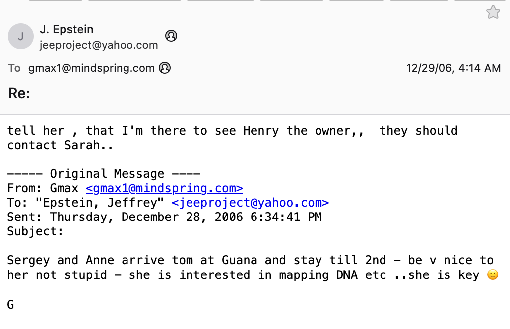 Jeffrey Epstein Recruited NSA Codebreakers for Genome “Manhattan Project”The financier pursued cryptographers to “hack” the genetic code, and develop “new signals intelligence” to understand inter-cellular communication.In the decade before Russia’s invasion of Ukraine in 2022, the U.S. and Russia were engaged in high-stakes exchanges of advanced technology involving the Massachusetts Institute of Technology (MIT) and the Skolkovo Innovation Center—a Russian government-backed technology hub that aimed to jump-start a “venture” innovation ecosystem in Moscow. Jeffrey Epstein sat at the crossroads of academia, philanthropy, and venture finance as these global capital flows were threatened by the brewing confrontation in Ukraine. In 2013, during the early cryptocurrency boom, Epstein sought an audience with Vladimir Putin to encourage the Russian president to shift course from the MIT–Skolkovo model. Instead of playing “catch up” with the United States through venture-backed startups, Epstein proposed, Russia could help lead a new financial system based on a novel global currency. Epstein funded the early development of cryptocurrency through the MIT Digital Currency Initiative, founded in 2015. MIT’s Bitcoin Core Development Fund helped pay bitcoin’s early developers to maintain the open-source software authored by Satoshi Nakamoto, bitcoin’s anonymous inventor. Epstein was an early investor in Coinbase, and he was friends with Brock Pierce, the co-founder of U.S. dollar stablecoin company Tether, which operates, in effect, the world’s largest crypto bank. Epstein was also recruiting cryptographers to a more ambitious project: hacking the human genome. In an email to a redacted recipient in August 2012, Epstein wrote, “My biology gurus at harvard all agree that the signal intelligence used by the various agencies , could be put to work on breaking the dna code or protein signal problems. breaking foreign codes is the expertise of the us and nsa.” Epstein prompted the recipient to help him recruit “code breakers” from the various intelligence agencies: “it would be great to know which agency button to push.” In an interview with Steve Bannon months before his death, Epstein revealed that he had purchased a property in New Mexico—the Zorro Ranch—as a research facility to attract the nation’s top scientists from the former “Manhattan Project” campus in nearby Los Alamos after the U.S. government cut funding for high-energy physics at the end of the Cold War. “In our world, the physical world, there were things that were just unexplainable,” he told Bannon. “I wanted to see if we could build tools so others smarter than me could help investigate it.” The millions of documents published by the Justice Department last month reveal Epstein’s disturbing fascination with eugenic science, expressed through research linked to the intelligence services of multiple governments. Epstein covertly negotiated access to dangerous and ethically dubious technology, between financial elites, often alluding to grand ambitions for reshaping both the human genome and the world order. Drop Site News has spent the past several months exposing Epstein’s ties to U.S. and Israeli intelligence. Our full series is available here. We also partnered with Jmail in their effort to make the full Epstein files accessible and searchable. View the archive at https://jmail.world/. If you value this reporting, can you make a tax-deductible donation today to help us keep going? Jeffrey Epstein Recruited NSA Codebreakers for Genome “Manhattan Project”The financier pursued cryptographers to “hack” the genetic code, and develop “new signals intelligence” to understand inter-cellular communication. In January 2010, Ilya Ponomarev, a member of the Duma—the Russian parliament— helped arrange a visit to Massachusetts Institute of Technology (MIT) by a group of senior Russian officials. He told a Latvia-based outlet he was in Boston to explore cooperation between Russian and American startups. Vladislav Surkov, deputy of then-President Dmitry Medvedev, was part of the delegation. At the time, Surkov was seeking to develop the “second leg” of a managed multiparty system to counter-balance Putin’s dominant United Russia Party. After the visit, Surkov asked Ponomarev, a popular member of A Just Russia, the controlled opposition party, to become a “technology transfer” advisor for Viktor Vekselberg, a Russian-Israeli billionaire. Vekselberg, owner of the conglomerate Renova Group, was in charge of the Skolkovo Innovation Center, dubbed Moscow’s “Silicon Valley,” a high-tech business district subsidized by Russian state-owned enterprises and administered by the non-profit Skolkovo Foundation. With Ponomarev’s help, Vekselberg established the Skolkovo Institute of Science and Technology, or “Skoltech,” a $300 million research partnership paid by the Skolkovo Foundation to MIT. MIT and Skolkovo share profits and royalties from the partnership, which includes intellectual property related to CRISPR gene-editing technology. Skoltech supported research on RNA-targeting methods using CRISPR, and also owns rights to diagnostic technology based on the same RNA-targeting effector. Like many of his ultra-wealthy peers, Jeffrey Epstein was fascinated by gene therapy and life-extension technology. He once suggested to news anchor Katie Couric—to her shock and disgust—that he even planned to clone himself. But his interest in genomics was more than a passing fancy; it was an enduring obsession during the final decades of his life. In December 2006, before Epstein was jailed for prostitution of a minor in Palm Beach, Ghislaine Maxwell invited Google co-founder Sergey Brin and his then-girlfriend Anne Wojcicki to Epstein’s Little St. James Island, according to emails in Epstein’s hacked Yahoo! inbox vetted and published by Distributed Denial of S