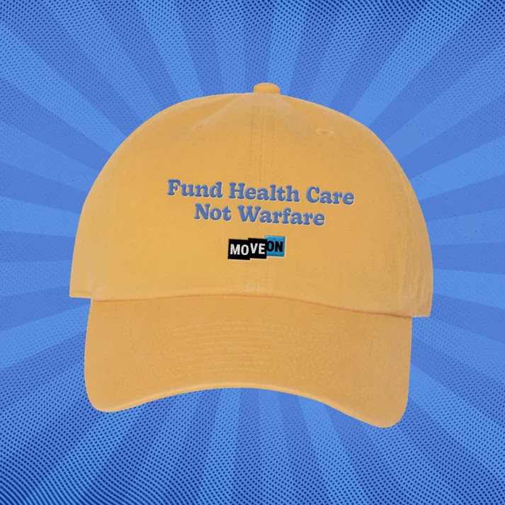 To help spread the word, MoveOn is offering these "Fund Health Care Not Warfare" hats.
